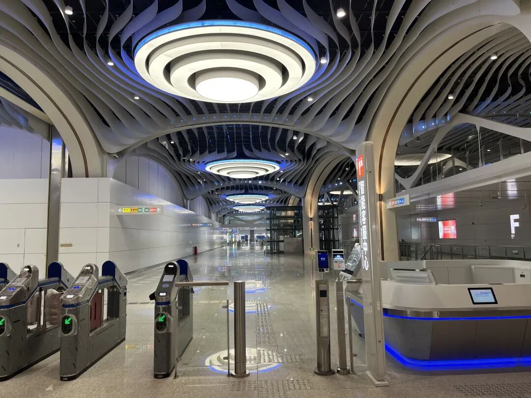 记者来到二十二号线芳村站,进站便看到了一座极具特色的空中艺术廊桥,这是为不进站乘车的市民提供的过街通道,相当于把地下人行通道融入地铁站之中。