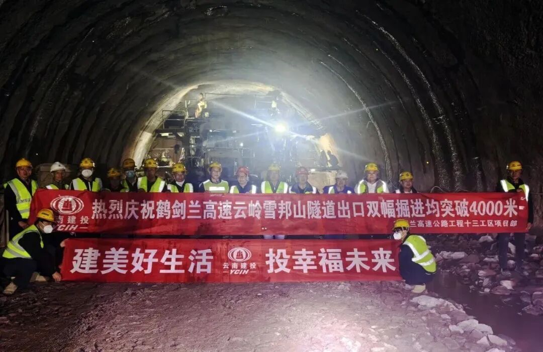 日前,鹤剑兰高速云岭雪邦山隧道出口双幅掘进均顺利突破4000米大关。
