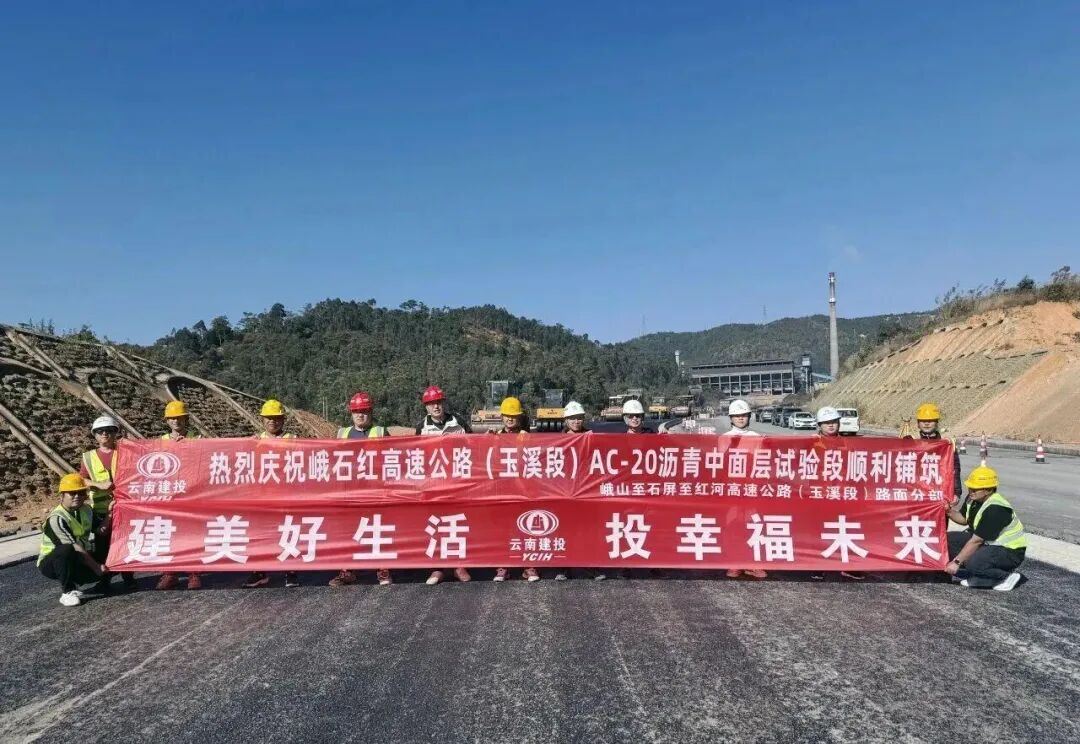 日前,峨石红高速公路(玉溪段)顺利完成沥青中面层试验段铺筑。