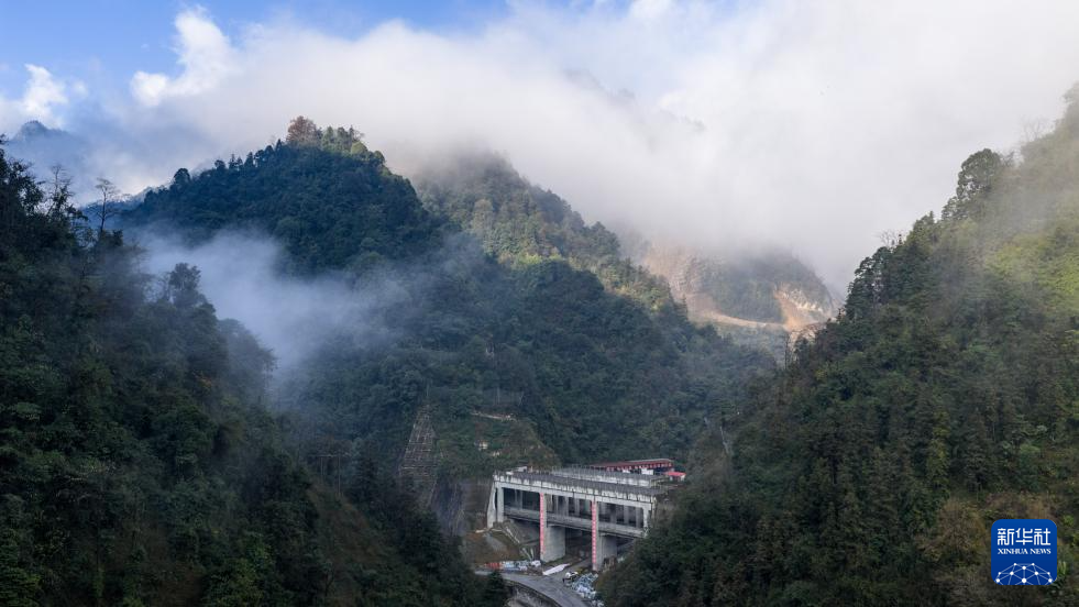 12月10日拍摄的渝昆高铁彝良隧道口(无人机照片)。新华社记者 胡超 摄