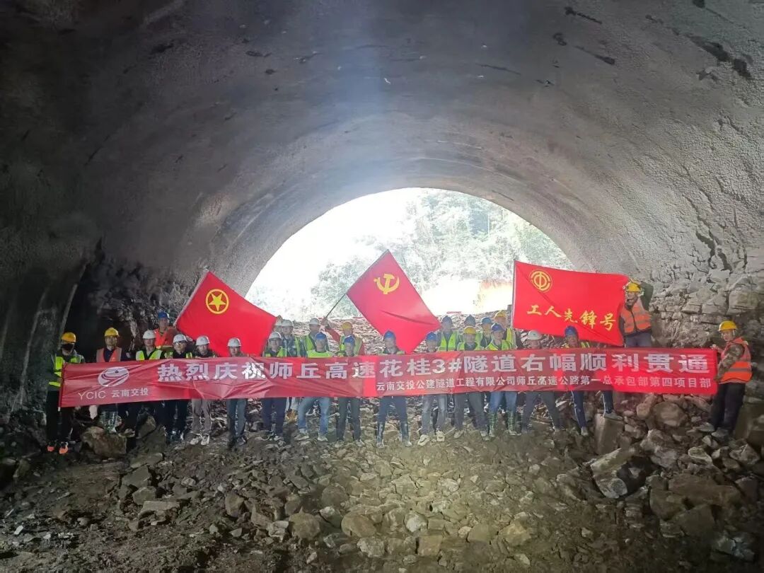 此外,师丘(曲靖段)高速公路阿麦1号特长隧道双幅、花桂3号隧道右幅顺利贯通。