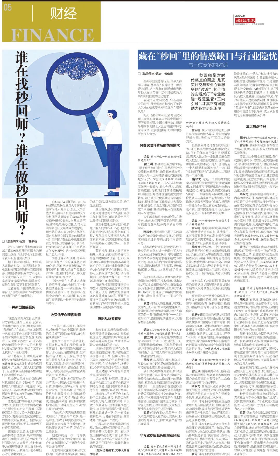 秒回师是对时代痛点的回应,是真实社交与专业心理服务的“过渡”,其价值的实现赖于“专业赋能+规范监管+正向引导”,才真正有可能助力各方走出困境