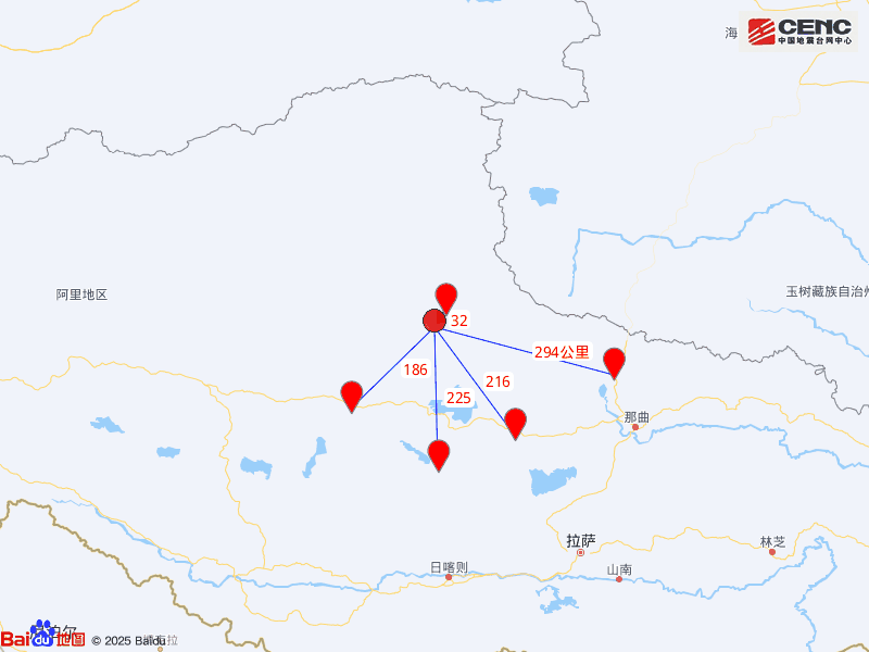 周边县城:震中距双湖县32公里、距尼玛县186公里、距班戈县216公里、距申扎县225公里、距安多县294公里,距西藏那曲市360公里,距拉萨市436公里。