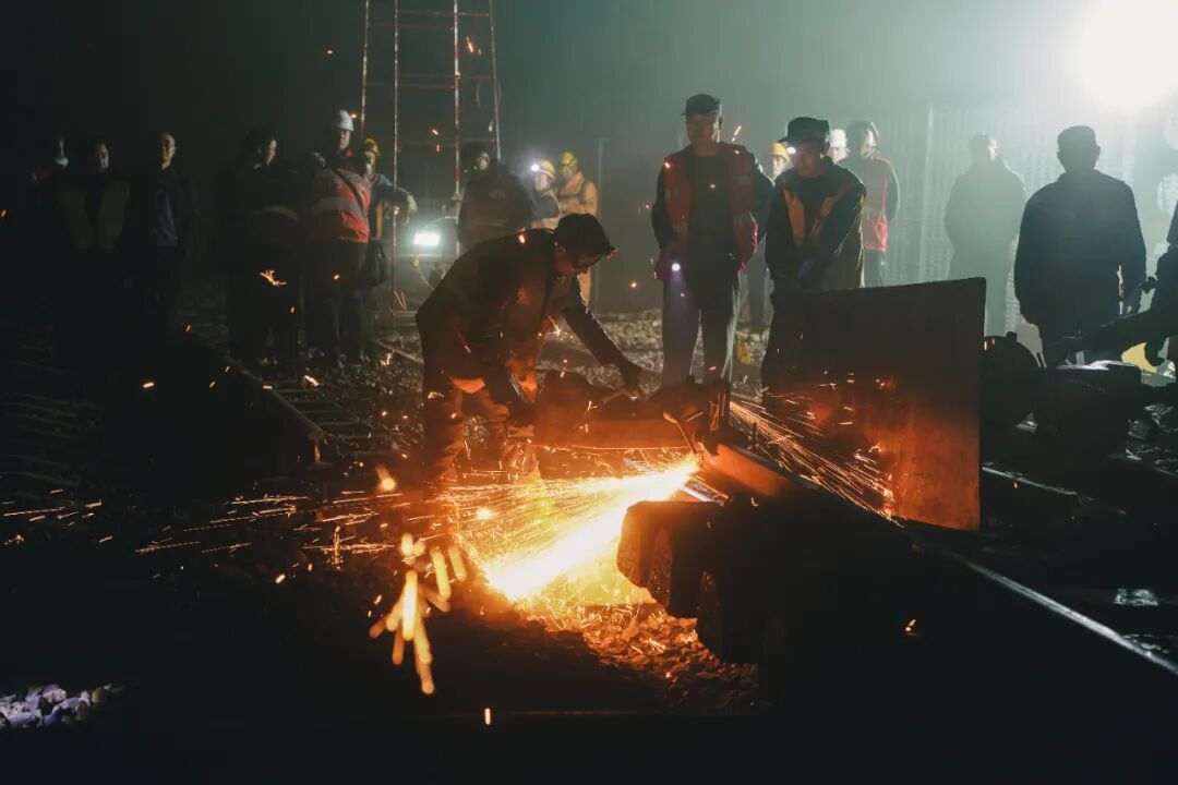 11日凌晨4时许,拨接施工正式开始。600余名施工人员、70余套机械设备,经过270分钟的紧张有序作业,8时30分顺利完成成渝铁路黄磏至铜罐驿区间拨接施工。此次铁路拨接工程涉及线路共约284米,涉及土建、轨道、通信、信号、接触网、供电专业立体交叉施工,其间要完成道岔拆除、线路拨移、轨道铺设、钢轨合龙焊接、道砟回填、精细整道、验收开通等多个施工项目。“我们在节点目标确定后,紧密配合,工序衔接有序,攻克了房屋拆除滞后、道路改移用地纠纷、路外环境安全及采取‘大天窗’开挖拼装人行通道新工艺,解决开通区段内村民安全通行等问题。”施工单位中铁一局成渝项目负责人罗建华说道。