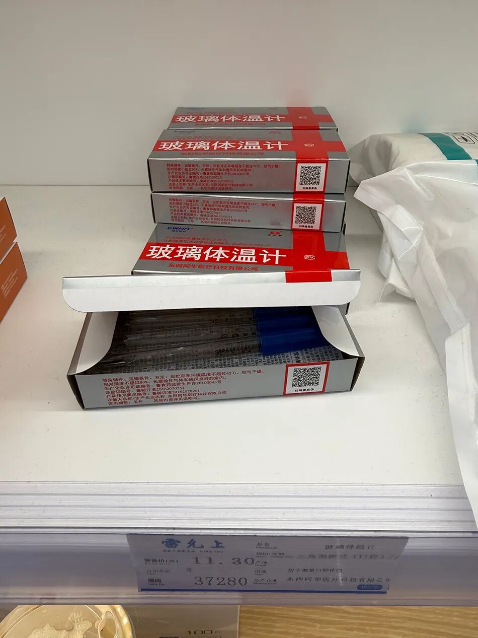 当日中午12点半左右,在位于杨浦区靖宇东路上的国大药房门店内,记者以消费者身份咨询药店服务人员,其表示,水银温度计这两天来销量有所增长,但货源仍然充足,“从昨天(12月10日)开始到今天,确实买的人多了,不少人在网上下单(水银温度计),还有人一次买了3、4支。”