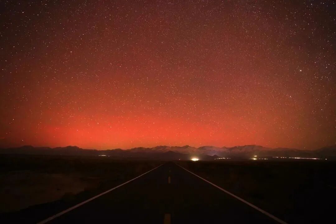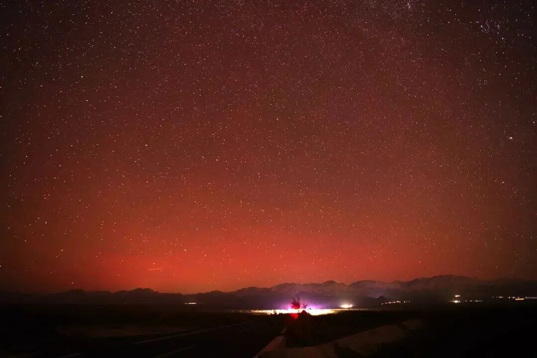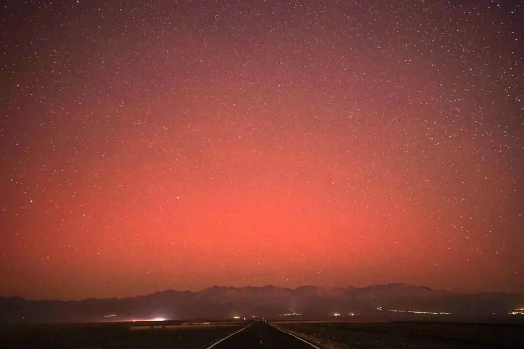 2025年11月12日晚间,受强烈太阳耀斑活动影响,新疆哈密市伊州区西山乡夜空出现绚丽极光景观。据了解,此次极光现象因太阳爆发引发的地磁活动增强而扩展至中纬度地区,在当地较为罕见,吸引了部分居民和摄影爱好者的关注。