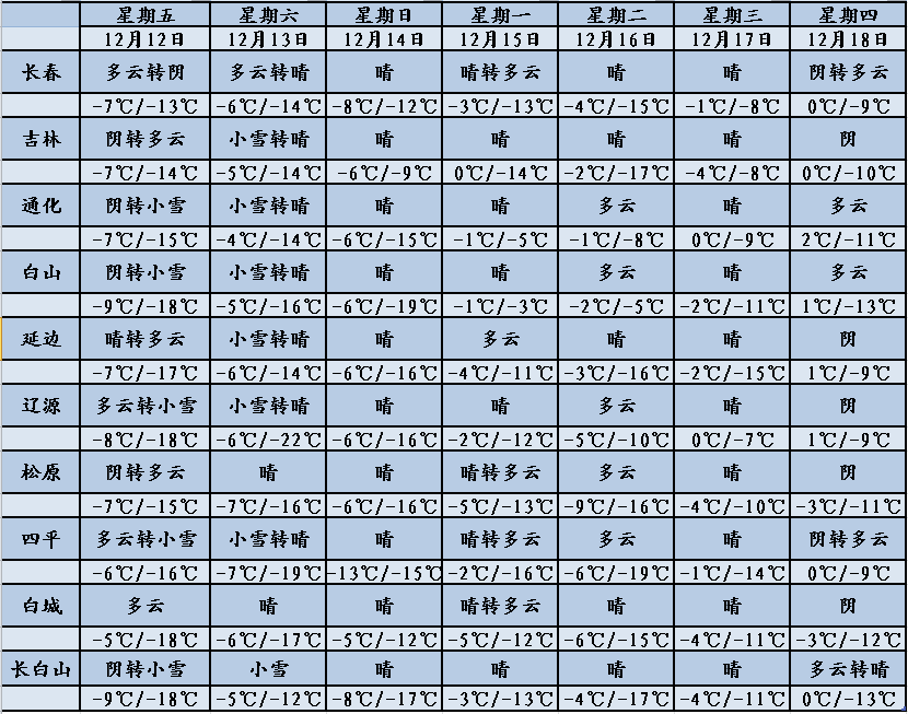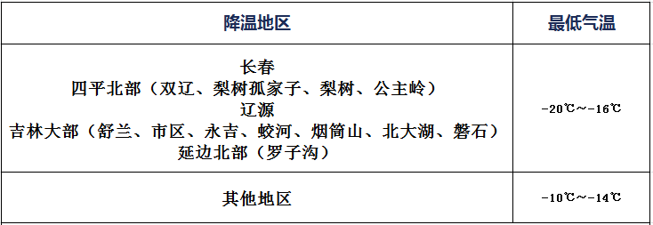 今天夜间到明天白天,最低气温:白山-25℃,其他-23~-17℃,最高气温:全省大部-9~-5℃;长春市最低气温:-18℃,最高气温:-7℃。
