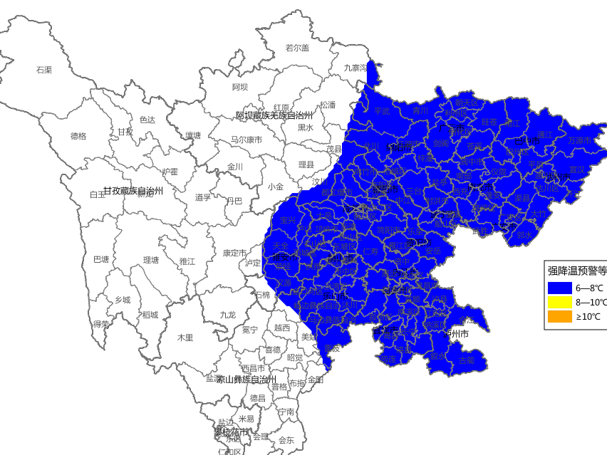 强降温蓝色预警