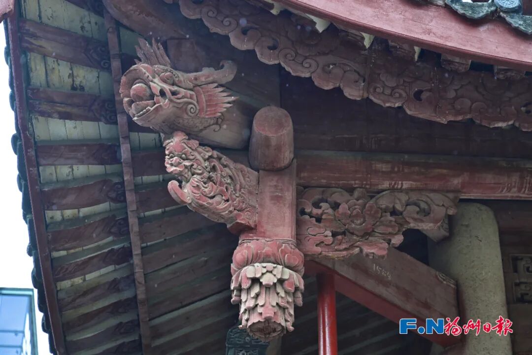 漫步在修缮后的院落,历史的痕迹随处可见。大成殿内四根重达16吨的石柱矗立,体量之巨,在全国现存文庙中属凤毛麟角。据林立杰介绍,在清代,虽无明文规定孔庙规制,但惯例以七开间为府县级文庙的最高形制。福州因文风炽盛,文庙得以建成七开间大殿,即便放眼全国,其规模也仅次于北京、曲阜、南京、吉林等地极负盛名的文庙,位居前列。