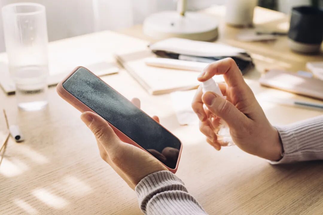 在触摸公共区域以及饭前便后要常洗手,同时也要记得用酒精棉签或酒精湿巾给手机消毒。