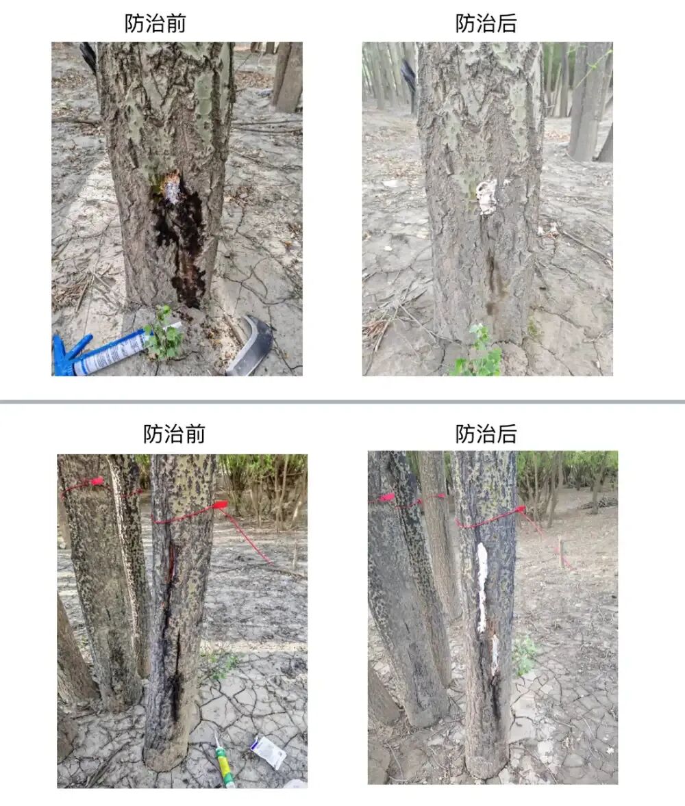 同时,科研团队给杨树定制了一套“爱己方法”——使用“树干刷白预防+病斑刮除+拮抗微生物菌剂定向施用”的复合绿色防治模式,杨树腐烂病持续控病率达到80%以上。林子里原本的酸腐味没了,取而代之的是愈加自然的森林气息。