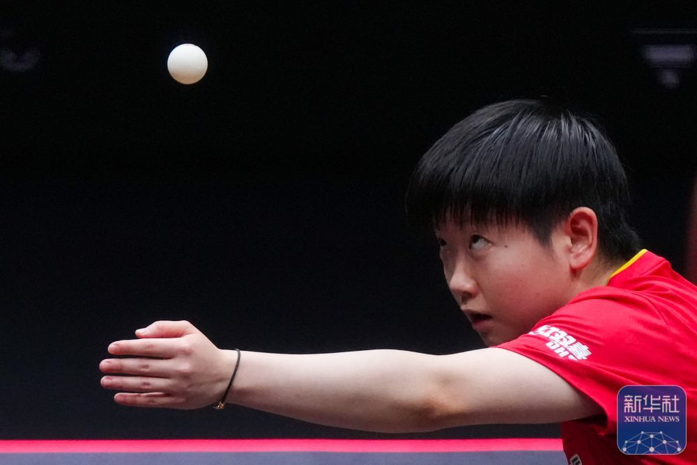 孙颖莎在比赛中发球。新华社记者 朱炜 摄