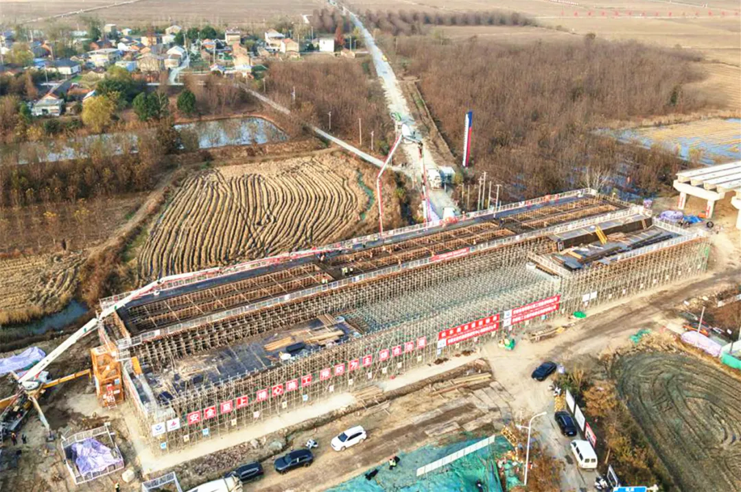 此次浇筑的现浇梁首联位于项目关键节点跨S323分离式立交桥,梁体总长达105米,混凝土浇筑方量约650方。此次首联现浇梁的顺利浇筑,不仅为项目桥梁上部结构施工吹响了大干快上的号角,更为全线桥梁贯通打下基础。