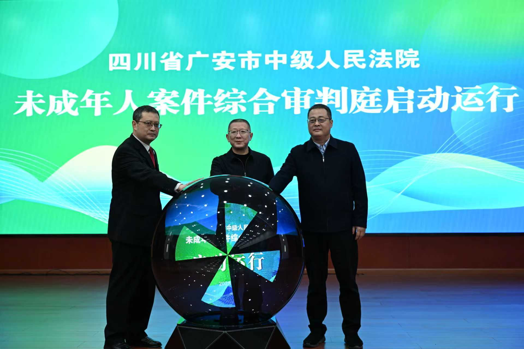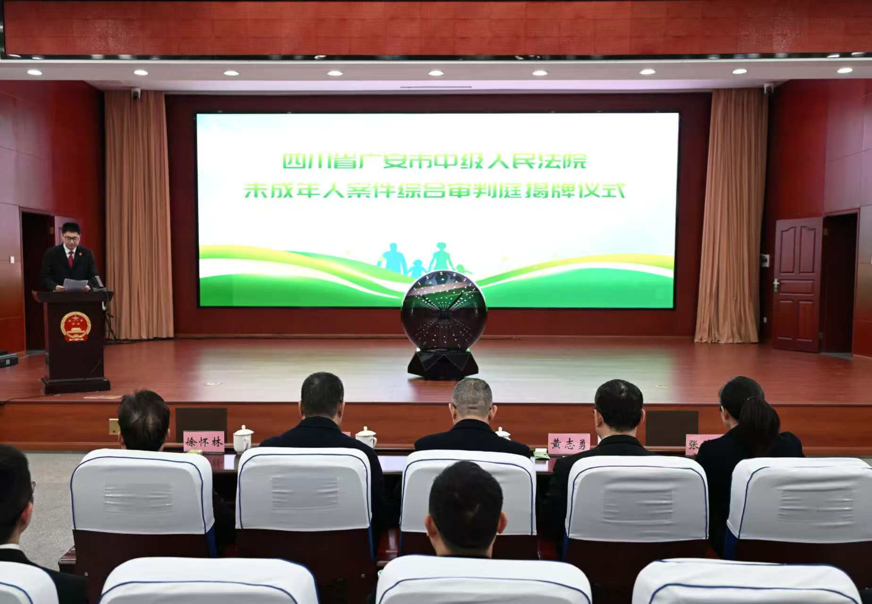 12月11日,广安市中级人民法院未成年人案件综合审判庭正式揭牌成立。省法院副院长吴涛,广安市市委常委、政法委书记陈泽斌出席仪式并致辞,共同见证广安未成年人司法保护迈入专业化、综合化新阶段。