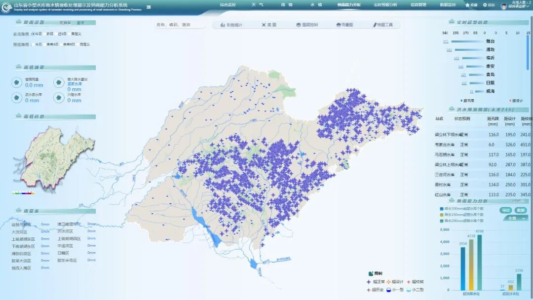 山东省水利厅利用在沂沭泗、大汶河等防洪重点流域建成的9部测雨雷达,汇集气象部门1—48小时高精度网格降水预报数据及全省8900余处雨量站与6700余处水位站实时数据,在省级矩阵平台开发部署全省水库纳雨能力分析预报和重点流域洪水预报应用,逐4小时滚动计算预报强降雨区水库未来水情与洪水过程,智能预测生成降雨区超汛限、超设计水库名单,靶向发送工作提醒,指导水库提前做好防范应对。今年汛期,在利用水库电子围栏自动查询水库巡查责任人是否在位履职的基础上,另采用“语音机器人+人工”的方式,累计提醒责任人1万余人次,覆盖水库9千余座次,牢牢守住小型水库防汛底线。全省大型水库和防洪重点中型水库依托矩阵平台,精准预报入库洪水总量、洪峰流量、洪峰达到时间等关键信息,指导应对措施提前部署到位。精准有效的监测预警,为防汛抢险赢得宝贵时机。