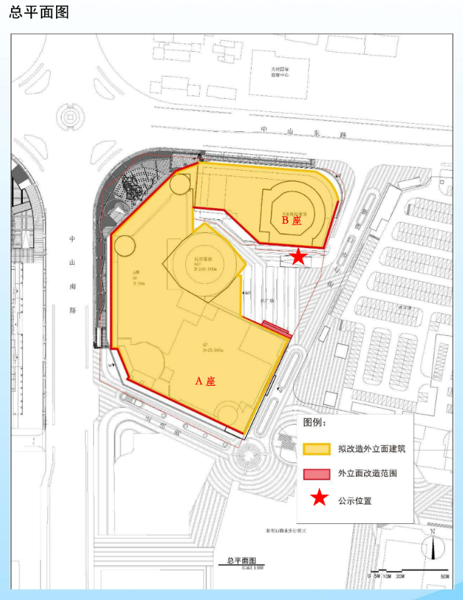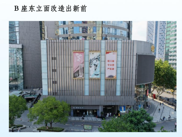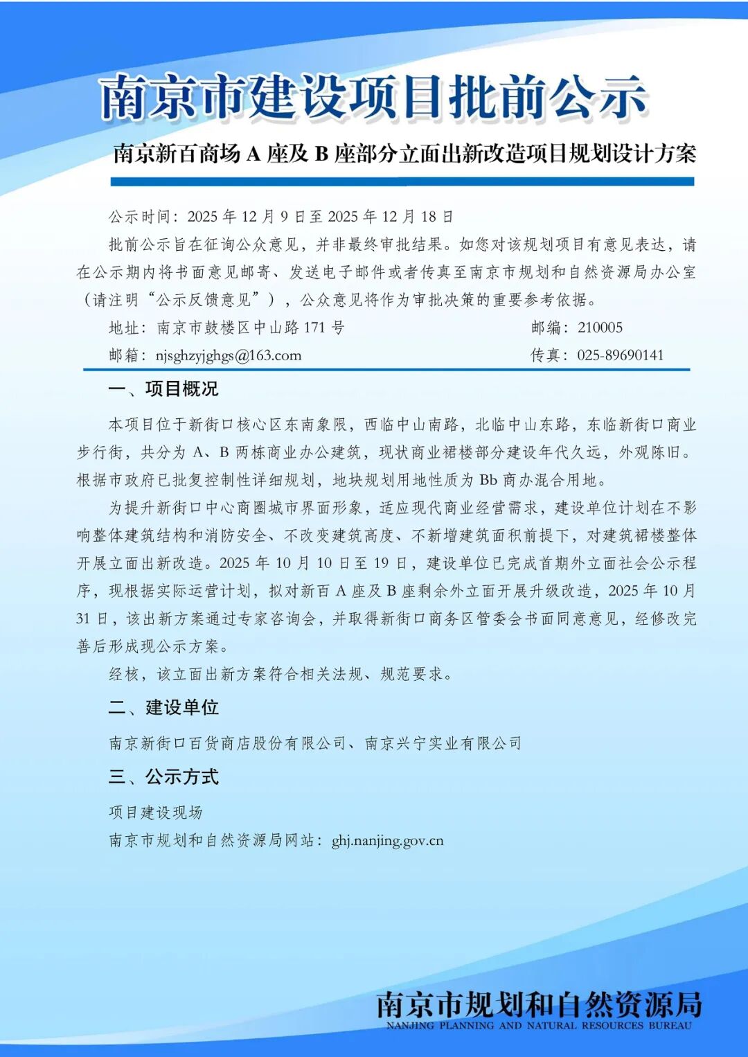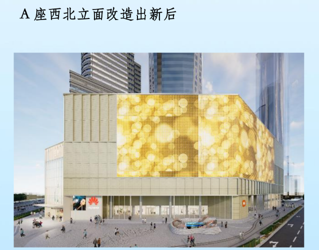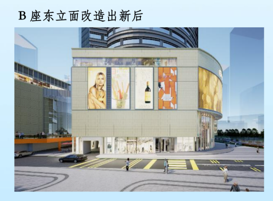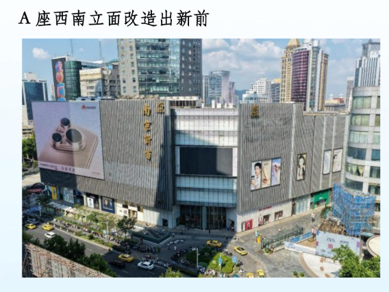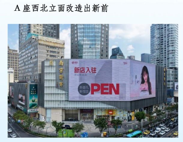 早在10月份,新百即对AB座部分东立面、北立面的改造进行公示。由于部分商业裙楼建设年代久远,此次,为提升新街口中心商圈城市界面形象,适应现代商业经营需求,再度提出对A座及B座剩余立面的更新改造计划。