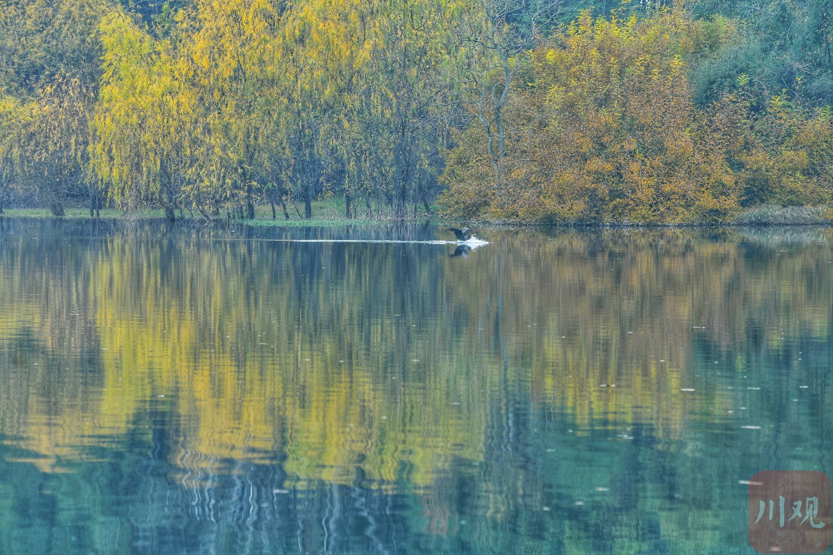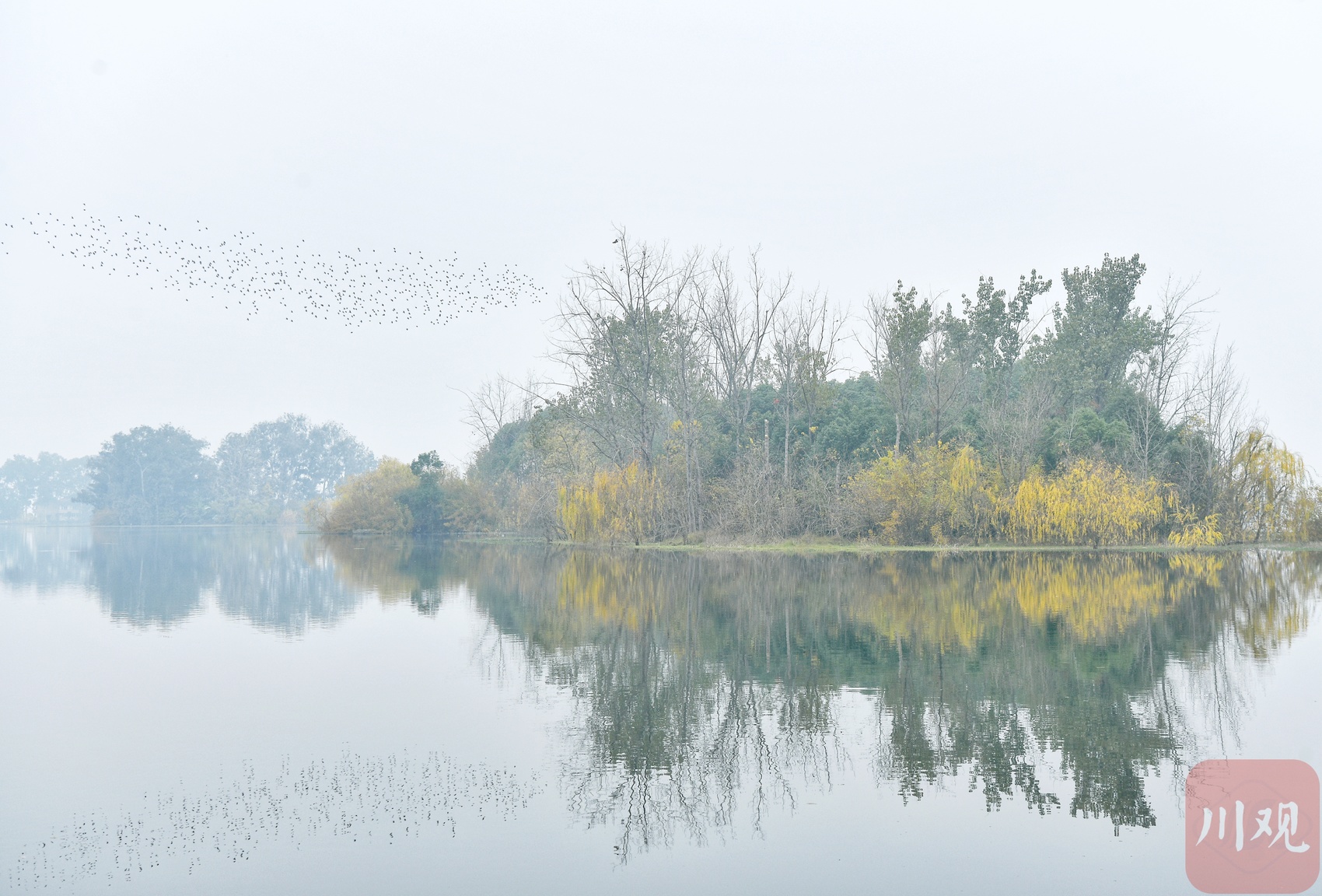 12月11日,冬日的四川成都三岔湖一片静谧。星罗棋布的岛屿与湖水相映,宛如一幅灵动的自然画卷。湖面上,鱼鹰展翅低飞,划过如镜的水面;湖心岛上,成群飞鸟栖息林间,岸边绿头鸭临水游弋,悠然自得。微风轻拂,灌木金叶与粼粼波光交织,为这片“成都千岛湖”增添了几分国画般的写意韵味。