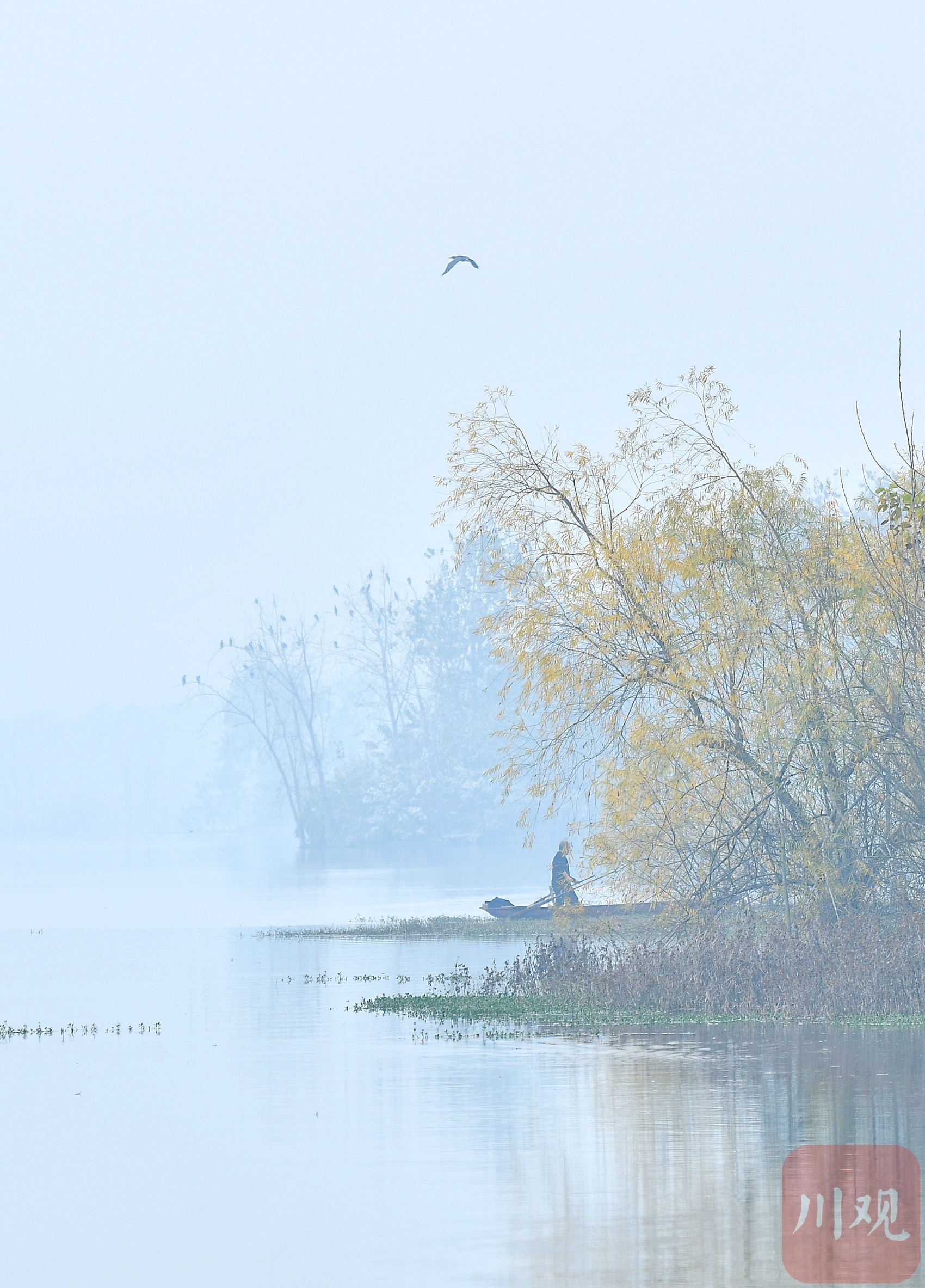 朦胧的三岔湖如梦如幻,清晰的三岔湖如诗如歌,鱼鹰与飞鸟齐飞,银杏同金箔一色。