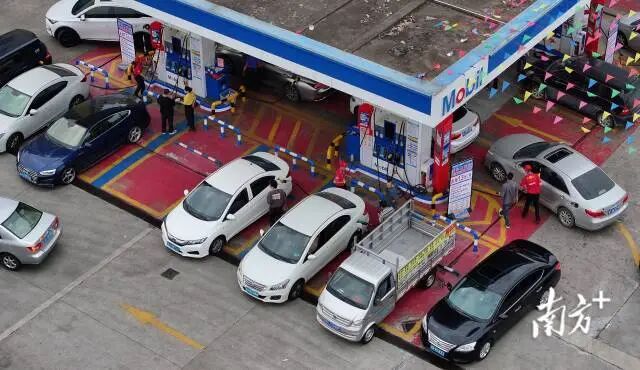 江门江海美孚加油站搞促销,前来加油的市民络绎不绝。南方+ 杨兴乐 拍摄