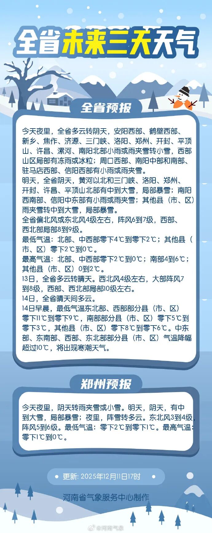 新一轮寒潮正在大举南下影响我国,11日上午河南气温已经明显下滑,预计随着冷空气继续扩散南下,今天将迎来此次寒潮重头戏:断崖式降温、大范围雨雪、9级左右阵风将组团来袭!