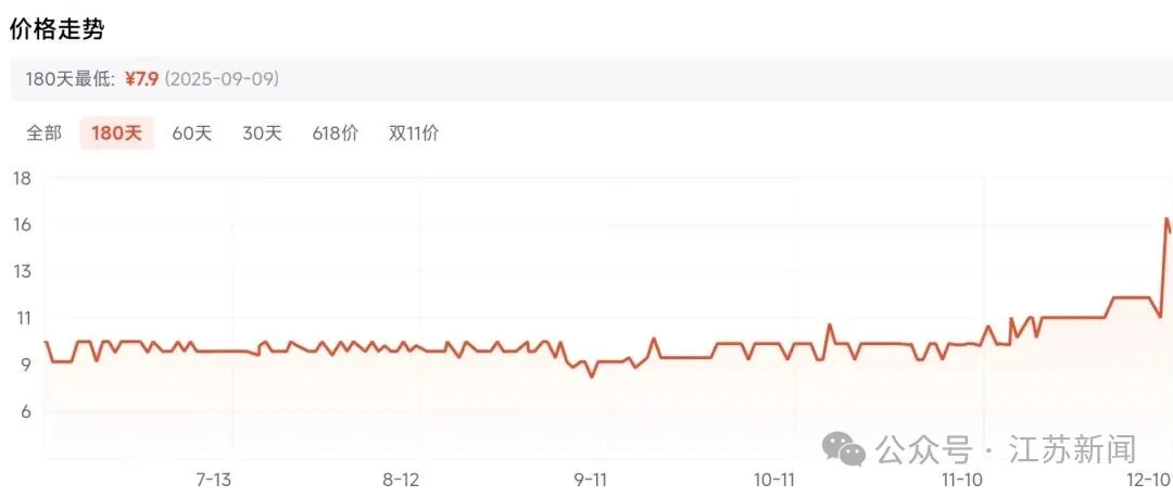 某比价平台上,记者注意到,原本在过去180天内价格基本稳定在7~8元的水银体温计,昨天突然价格翻倍。不仅如此,跳转到这些价格翻倍的水银体温计购买页面,也已显示无货,商品则被平台打上“周销量上涨10+倍”的标签。