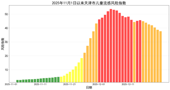 图2 2025年11月以来天津市儿童流感气象风险指数变化趋势