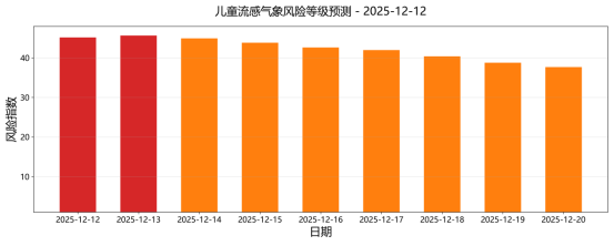 图1 2025年12月12日至12月20日天津市儿童流感气象风险指数预测趋势