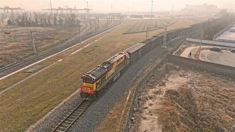 12月11日,满载食品、日用品、建筑材料等货物的X385次“长安·天路”进藏班列从西安国际港站出发,一路向西开往西藏拉萨、日喀则。