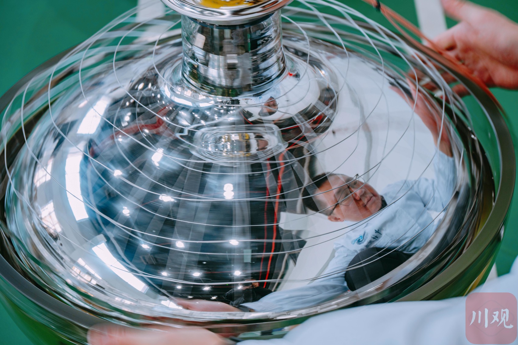 2023年12月22日,科研人员在23英寸玻璃球舱安装光学模块。