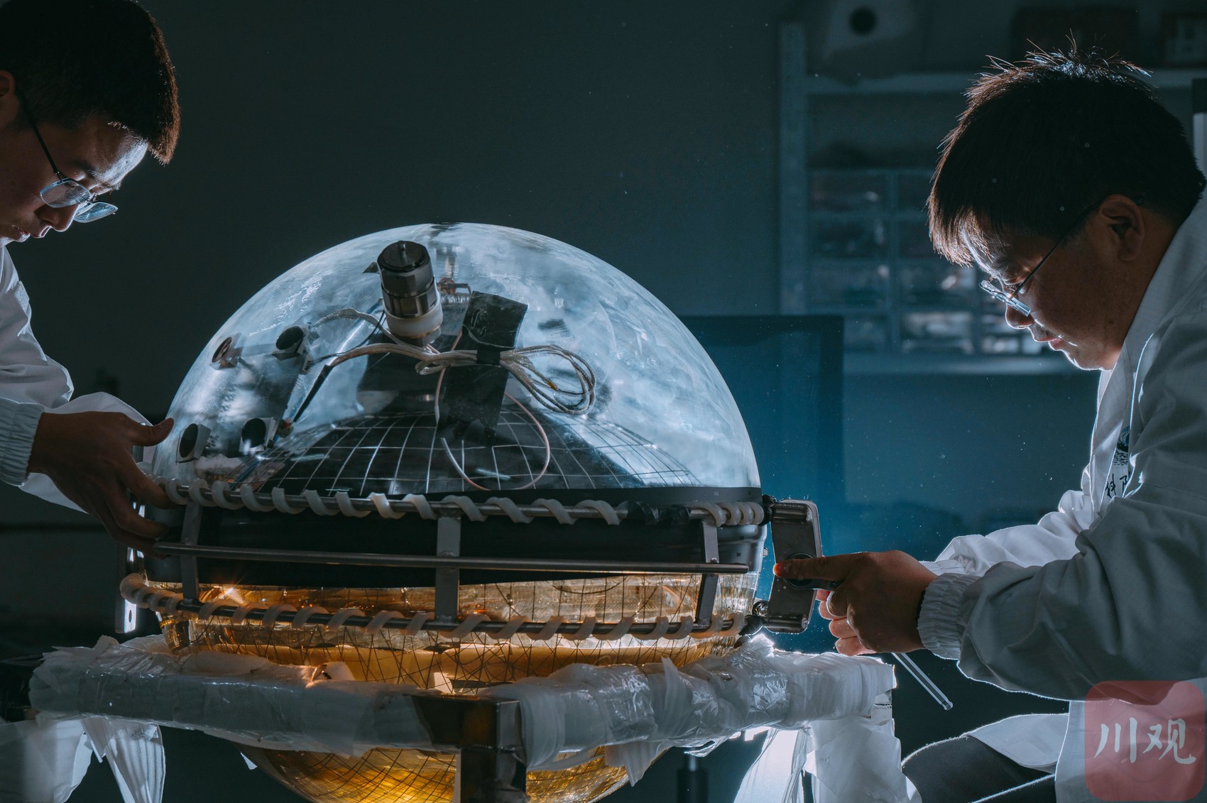2024年12月22日,科研人员队对装有光敏探头的玻璃球仓进行封装。