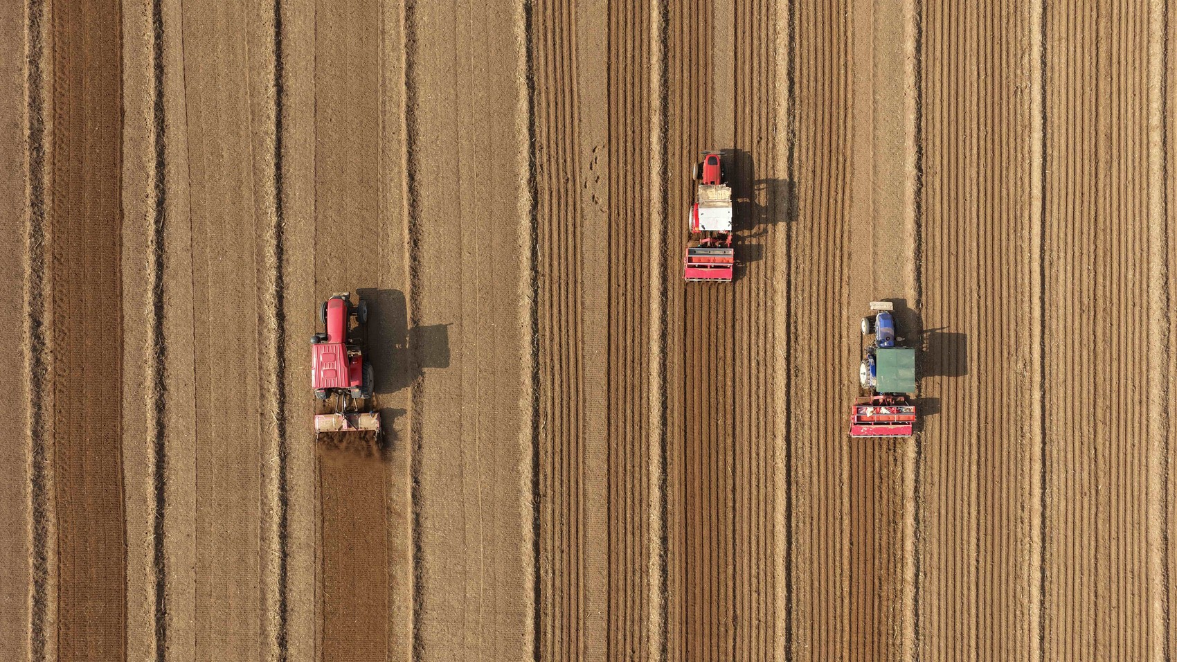 11月3日,农民在山东省聊城市茌平区博平镇播种冬小麦(无人机照片)。新华社发(赵玉国 摄)