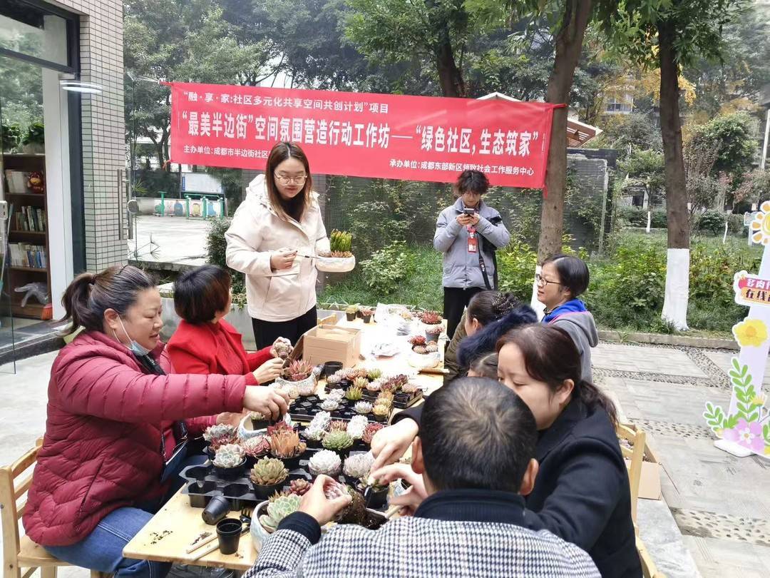 “这个紫珍珠是不是要多晒太阳?”12月12日,成都市武侯区机投桥街道诚品上院共享空间里,居民张阿姨举着刚领到的多肉盆栽,向现场老师认真请教。一场以多肉创意种植为载体的生态活动正热烈开展,众多居民齐聚一堂,用指尖的绿意为共享空间注入新的活力,这也拉开了半边街社区“融·享·家:社区多元共享空间共创计划”项目系列活动的序幕。