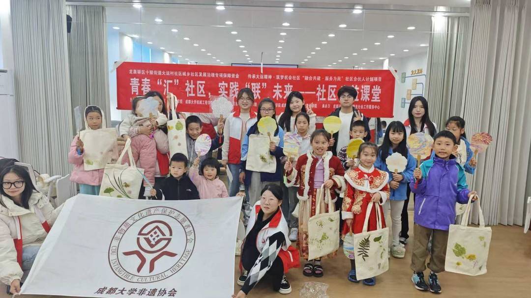 在社区文化建设方面,成都大学旅游与文化产业学院的志愿者为社区儿童开设“文旅赋能社区”课程,带领孩子们体验植物拓染、漆扇绘制等非遗技艺;机械工程学院的志愿者则带来“机械小创客”工坊,教孩子们组装太阳能车、手摇发电机等模型,激发孩子们的科学兴趣。