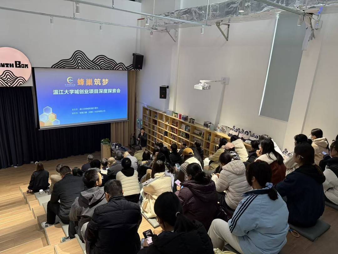 12月11日下午,成都市温江区温江大学城“蜂巢筑梦”创业项目深度探索会在温江大学城YouthBox举行。本次活动通过“项目路演+深潜工作坊”的创新形式,为创业项目搭建起精准对接资源、破解发展难题的专业平台,推动校地企资源深度融合。值得一提的是,三个项目路演都是“温江校友”创办,现场10位天使投资人过半数也是“温江校友”,他们的大学教育都在温江完成。近年来,柳城街道大学城社区依托“蜂巢筑梦”创新创业品牌,走出了“校友经济”发展新路径。
