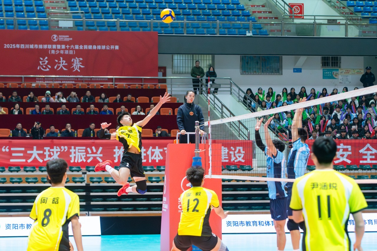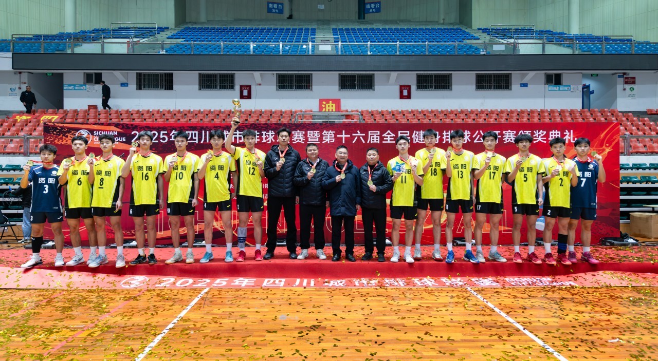 12月9日晚,资阳市体育馆内沸腾如潮。随着主裁判一声哨响,2025年四川城市排球联赛暨第十六届全民健身排球公开赛男子组总决赛第三局比分定格在25:22——资阳队3:0横扫广安队,总决赛两场全胜,成功夺冠。