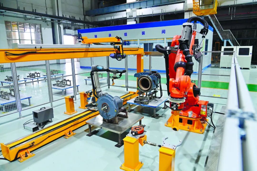 智能机械臂自动进行牵引电机组装作业,比人工操作更精准、高效。
