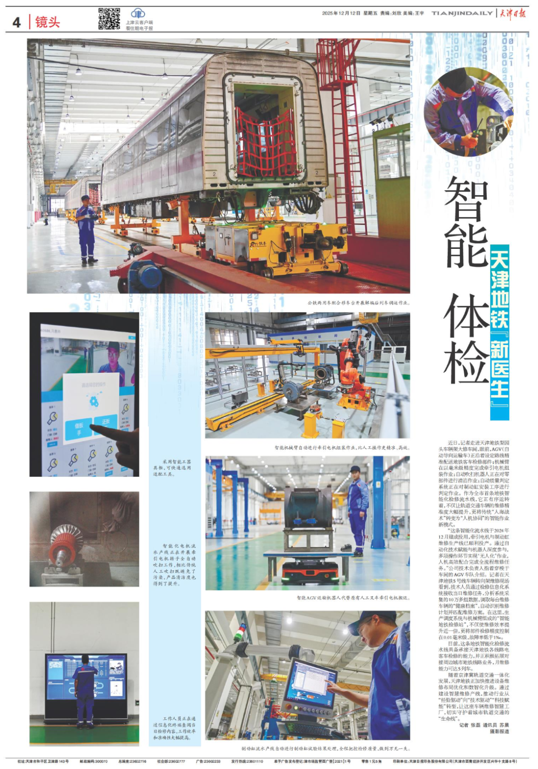 随着京津冀轨道交通一体化发展,天津地铁正加快推进设备维修布局优化和数智化升级。通过建设智慧维修产线,推动行业从“经验驱动”向“技术驱动”“科技赋能”转型,让这座车辆维修智慧工厂,切实守护着城市轨道交通的“生命线”。