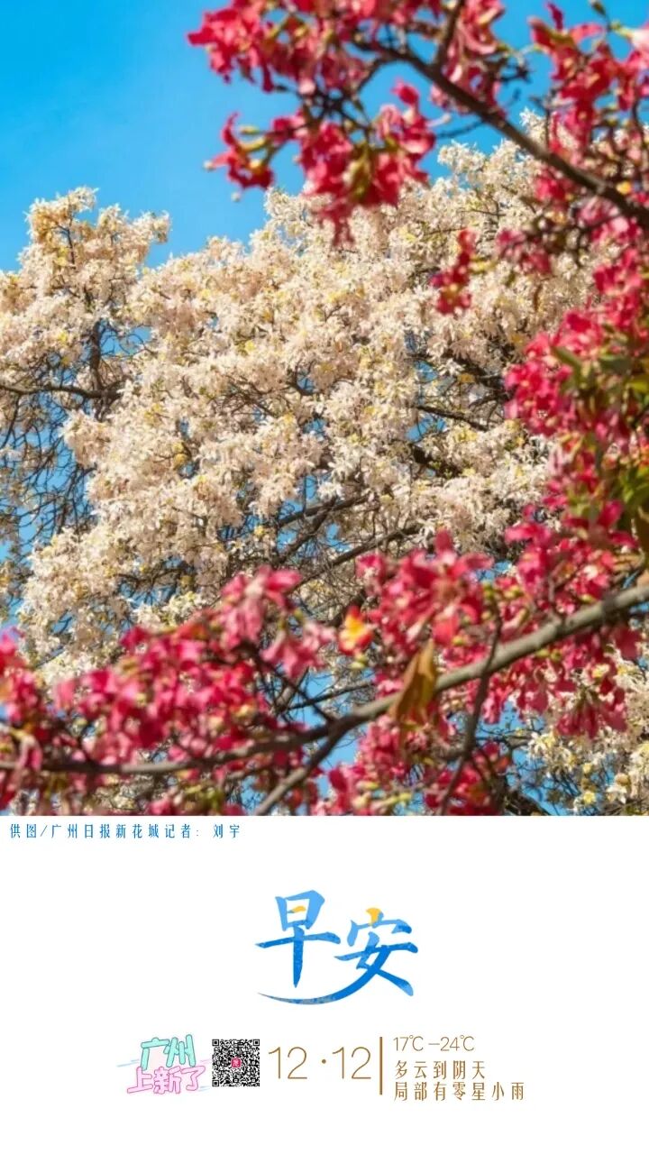 【降温要来了,周六白天广州最高气温只有17℃】广州市气象台预计,12月12日广州以多云为主,局部有零星小雨。12月13日气温持续下降并伴有小雨。12月14日,广州最高温仅有17℃。过程最低气温出现在12月15日早晨。详情>>>