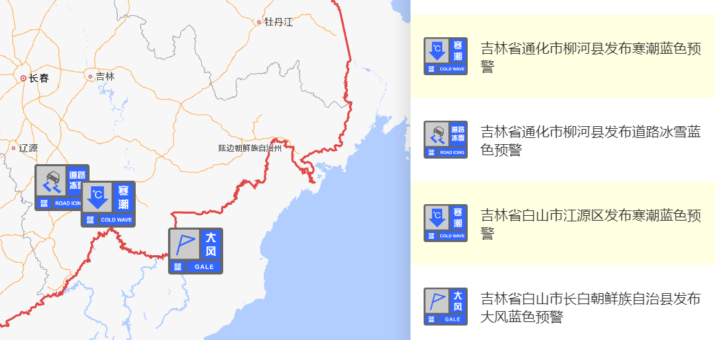 通化、白山两地发布多个预警信息