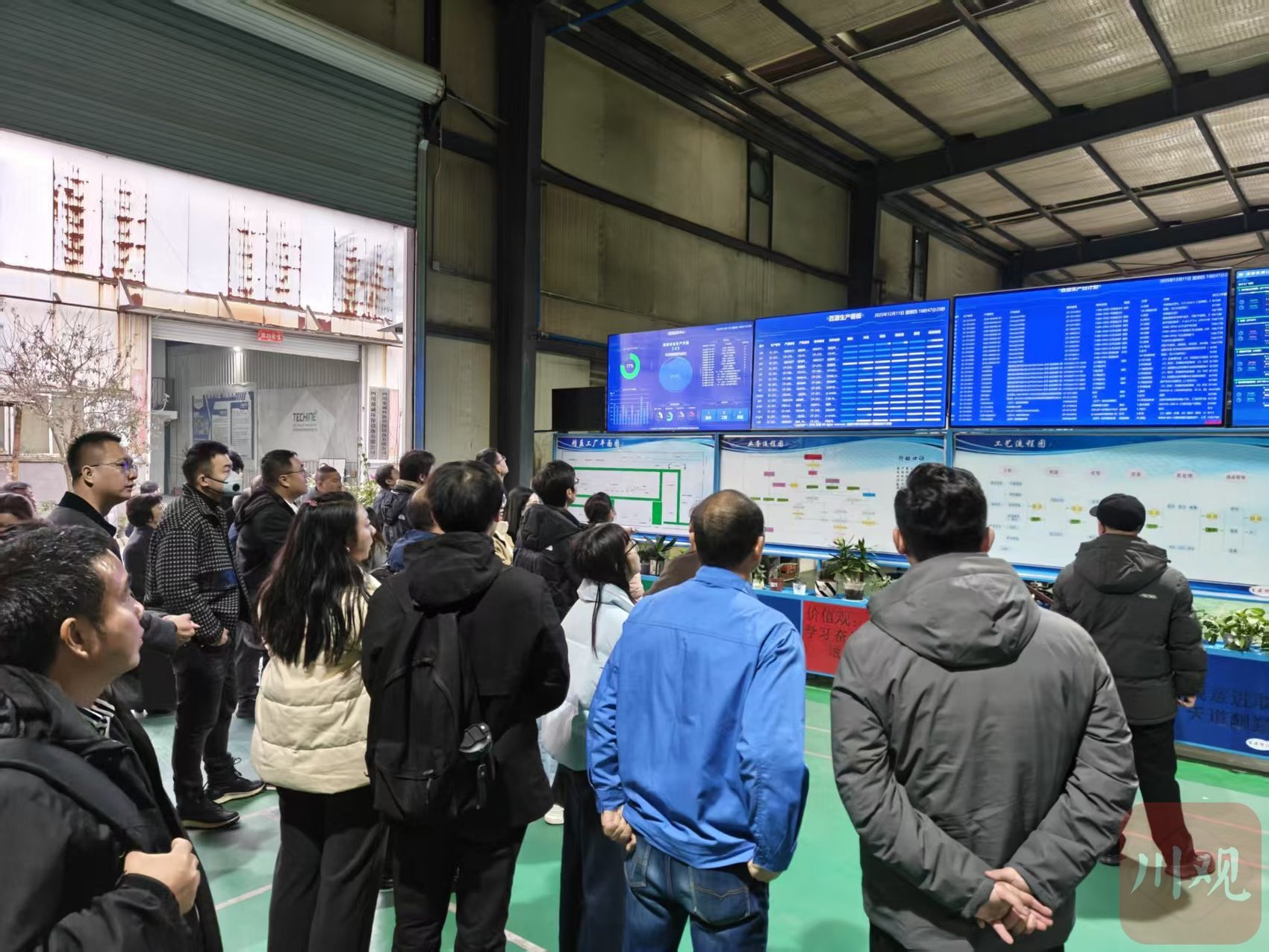 中小企业家们现场观摩百源机械的生产可视化大屏。