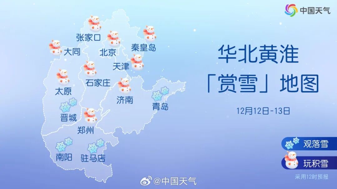 目前来看,雪还没有下到暴雪的标准。但别着急,12日下午到夜间,才是下雪的主要时段。甘肃中部、内蒙古中部、陕西东部、山西、河北西部、北京西南部、河南、山东西南部等地部分地区有大雪,其中,山西西部、河南南部等局地有暴雪,上述部分地区新增积雪深度5~10厘米,局地可达12~18厘米。