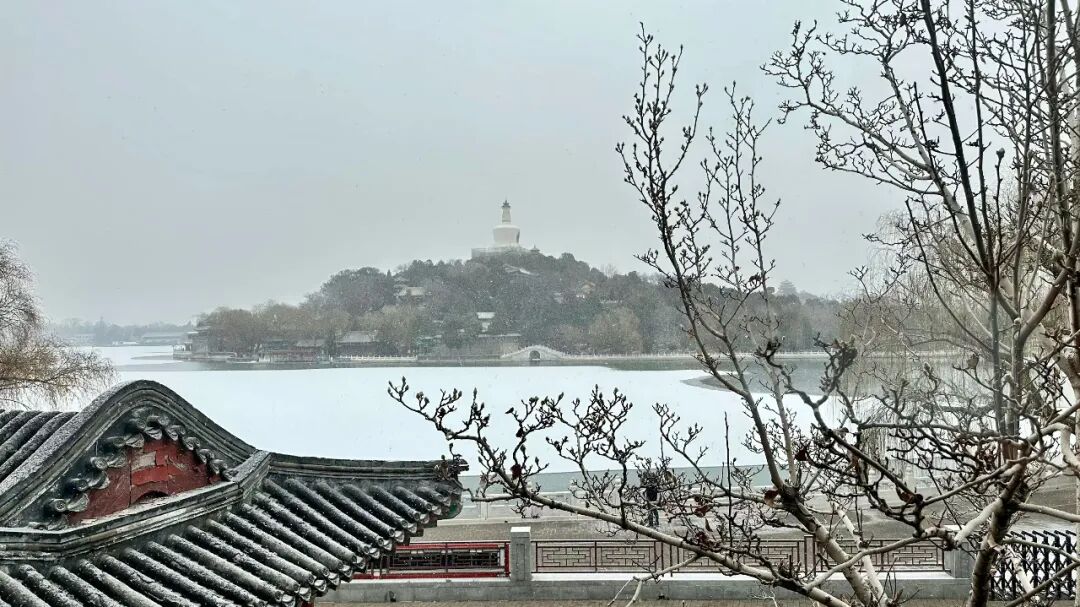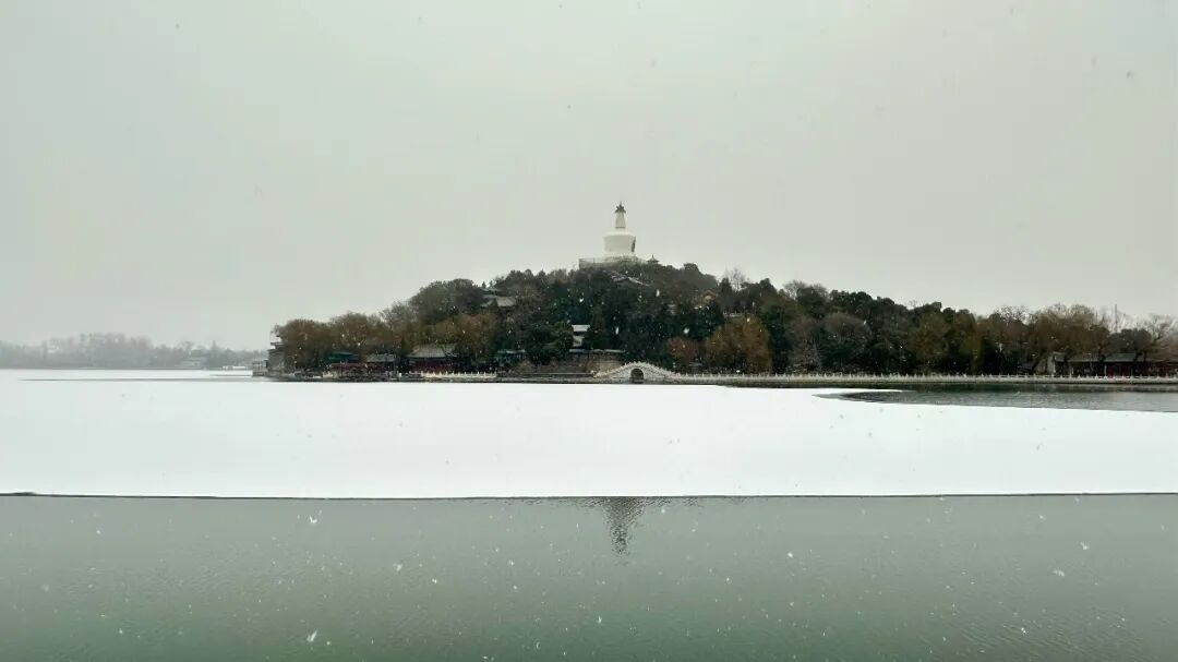 来北海公园赏雪,白雪与白塔更相配。湖面覆盖着薄雪,仿佛铺就了柔软的白毯,增添了几分空灵。