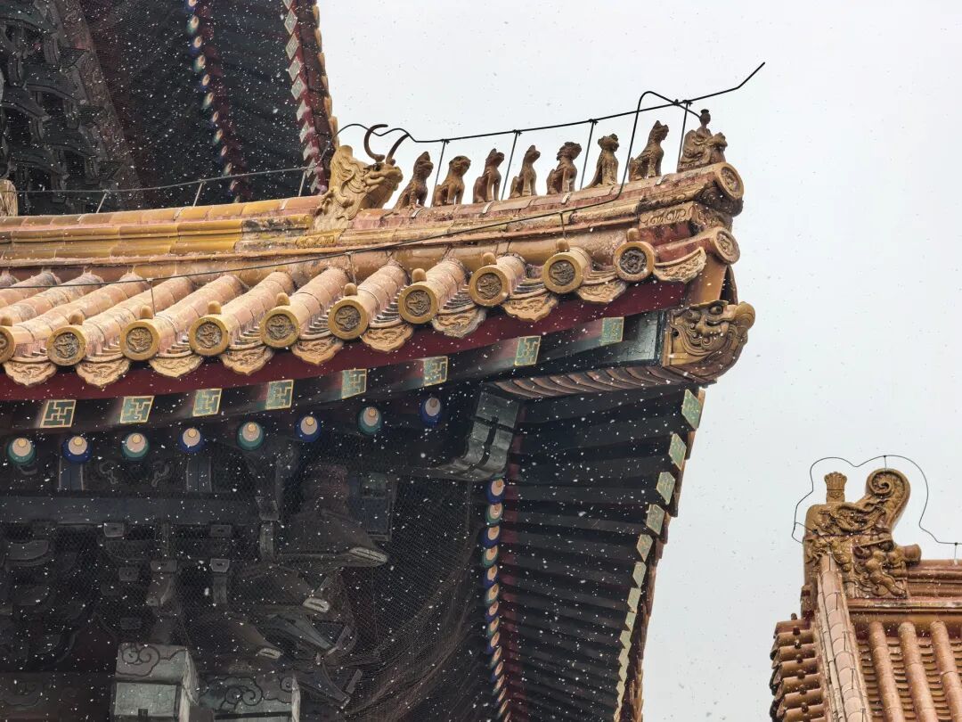 雪中的故宫,处处都像取景框。游客停下脚步,拍照、拍视频。层层叠叠的雪,映衬出深深浅浅的红……