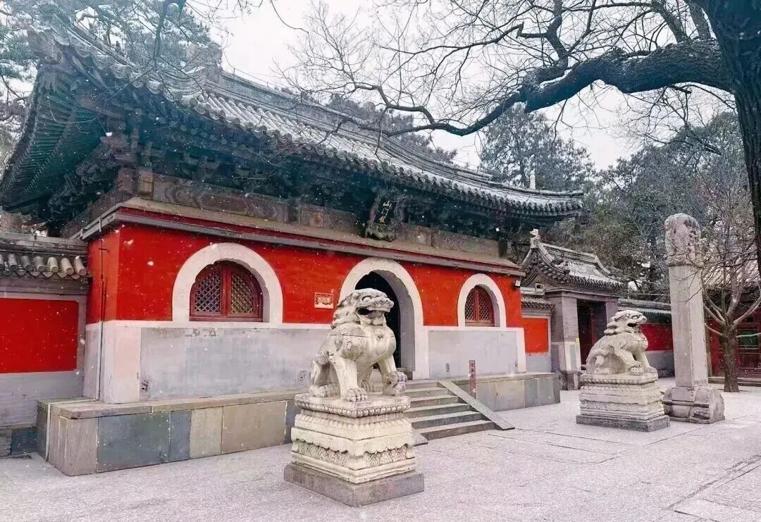 红墙被白雪轻覆,檐铃在寒风中轻鸣,宛如一幅幽静的画卷。沿着雪中小径前行,听风吹过松叶的声音,心灵在这片静谧中重归宁静。