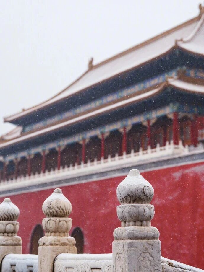 12月12日,北京。初雪降下,处处都像取景框。飞雪映朱墙,古城换银装,故宫建筑群被白雪覆盖,红墙金瓦与白雪形成鲜明对比,显得格外庄重、恢弘。一起感受美景❄️❄️❄️愿你踏着这片新雪,步步生花、岁岁平安!
