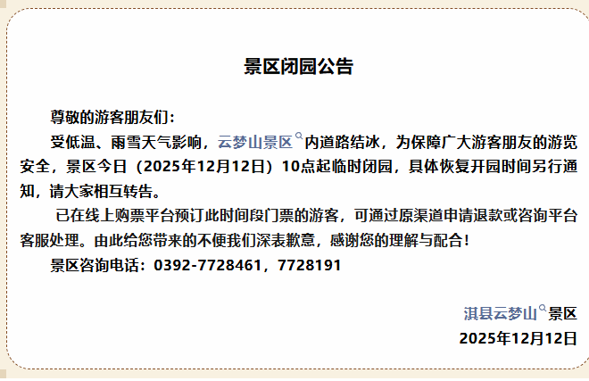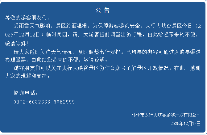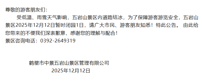 各景区于今日(12月12日)
