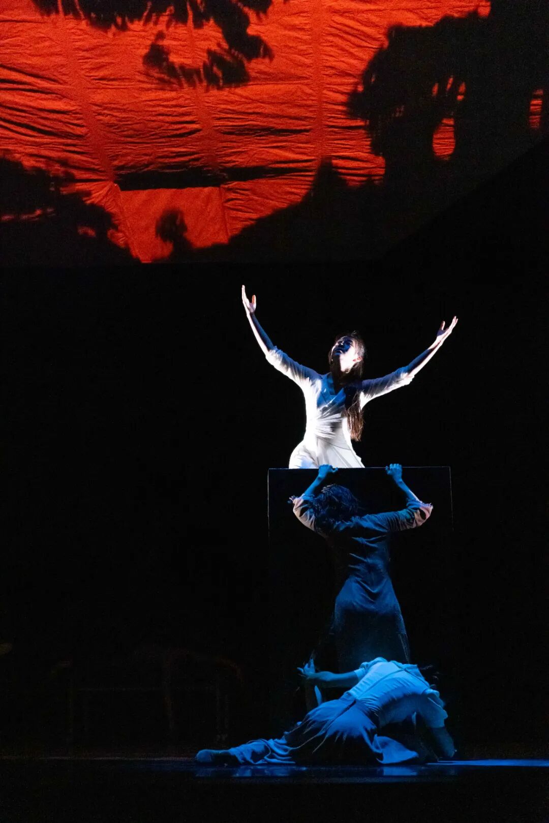 舞台中央,“魏特琳”的身影慢慢拉长,她手中的“日记”呈现出受难者的剪影——颤抖的肢体、求救的双手、绝望中相互搀扶的身影……在这样的场景下,佩雷拉用沉缓悲悯的肢体动作,将渴望拯救更多中国人却不可得的巨大痛苦具象化,每一个顿挫、每一次展臂,都像在历史尘埃中打捞被遗忘的生命。