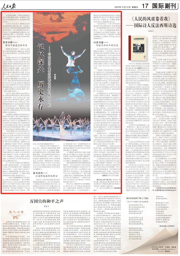 历史需要被铭记。这是《记忆深处》的创作初衷。这部舞剧用跨越国界的艺术语言,表达了全人类的共同愿望——守护和平、反对战争。南京大屠杀不仅是中华民族历史上最深重的创伤,更是人类文明共同的警示碑和捍卫和平的永恒坐标。