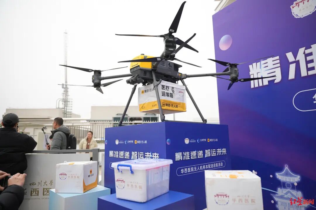 记者了解到,这条由四川大学华西医院联合芯明智能、美团无人机共同打造的“空中生命线”,连接起华西医院华西坝主院区与锦江院区,将原本受制于城市交通拥堵的样本转运时间,从高峰期的45分钟以上缩短至15分钟,标志着成都市首条穿越高密度核心城区的常态化低空无人机医疗航线正式开通运行。