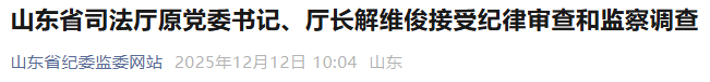 山东省司法厅原党委书记、厅长解维俊涉嫌严重违纪违法,目前正接受山东省纪委监委纪律审查和监察调查。
